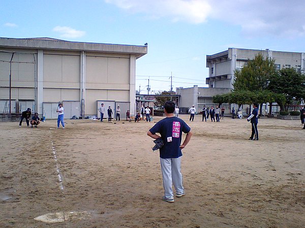 8:00より開会式、組合委員長のあいさつ、そして恒例の小金台小・K崎先生による準備運動、そして第一試合へ、という流れでした。